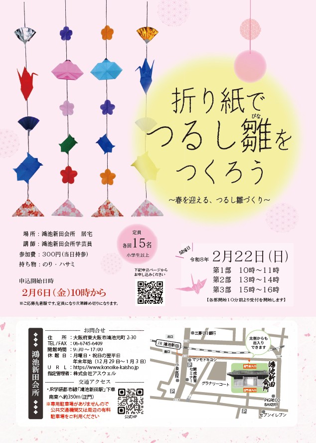 各回15名/小学生以上(定員になり次第締め切り)