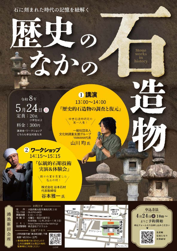 中世石造物研究の第一人者山川氏による講演『歴史的石造物の調査と復元』と数々の賞を受賞した谷本氏による名工の技を体験できる『伝統的石彫技術実演&体験会』が開催されます♪貴重なイベントとなっておりますのでお見逃しなく!