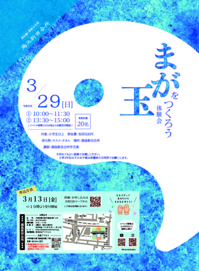 汚れてもよい服装でお越しください。 - 申込方法(受付先着順) ※受付開始:3月13日(金) 10:00 ~