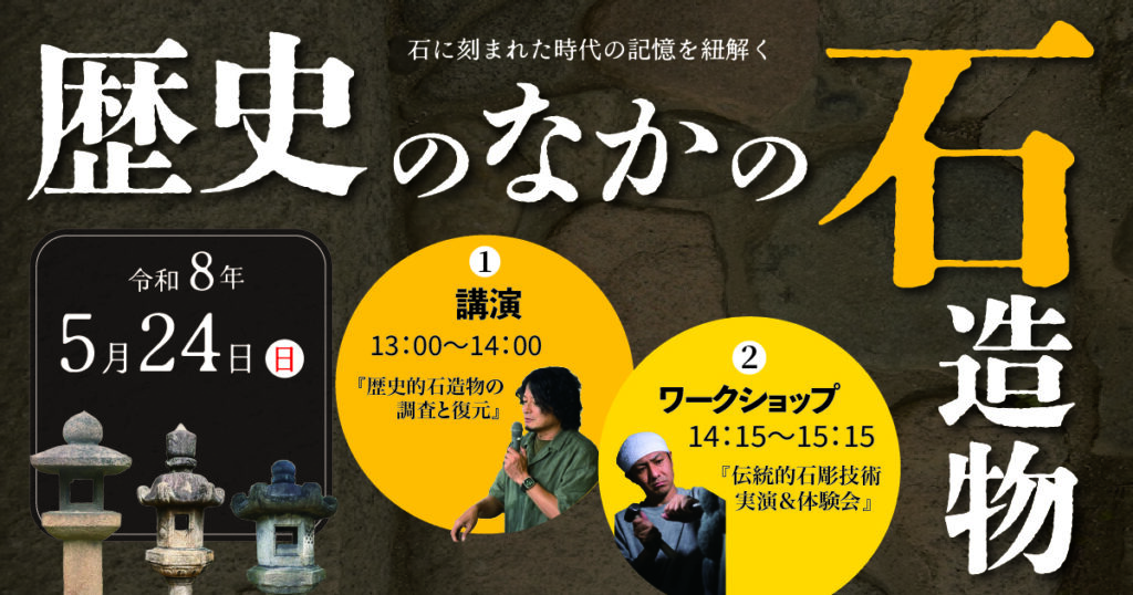 歴史のなかの石造物~石に刻まれた時代の記憶を紐解く~ 中世石造物研究の第一人者山川氏による講演『歴史的石造物の調査と復元』と数々の賞を受賞した谷本氏による名工の技を体験できる『伝統的石彫技術実演&体験会』が開催されます♪貴重なイベントと... -
